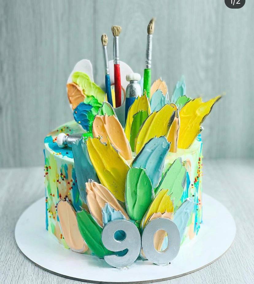 Торт с яркими цветами и необычными узорами.