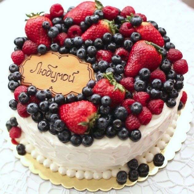 Тортик для любимой, усыпанный кучей ягодок.